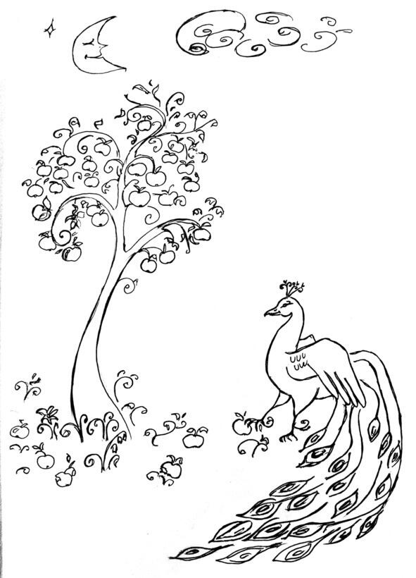 Только там павлин клевал,