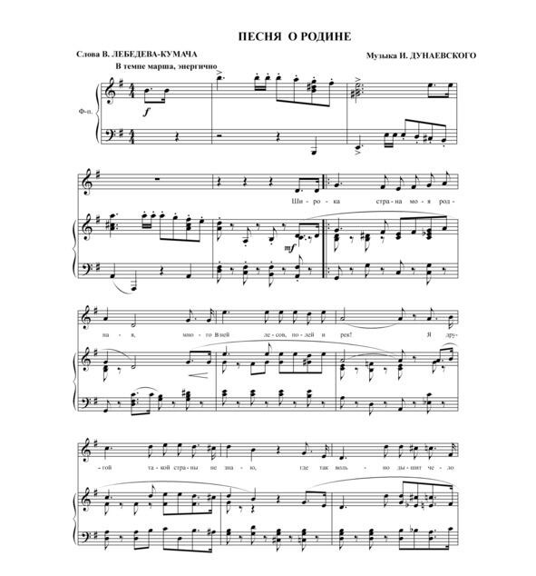 В 1936 году для фильма «Цирк» режиссёра Григория Александрова поэтом Василием Лебедевым-Кумачом и композитором Исааком Дунаевским была создана «Песня о Родине». Над песней Лебедев-Кумач и Дунаевский работали полгода. Не отходя от стола и рояля, не зная ни покоя, ни отдыха, в течение шести месяцев они непрерывно работали над трудно слагающейся песней. Ведь надо было спрессовать на одной страничке огромное содержание, а музыка должна была звучать и торжественно и проникновенно.