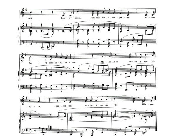 Интервал октавы, словно ярким лучом, высвечивает радостный, восторженный характер музыкально-поэтической мысли, зримо усиливая в «Песне о Родине» ощущение света и простора.