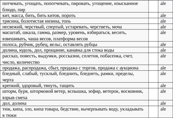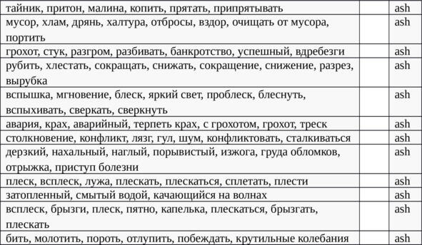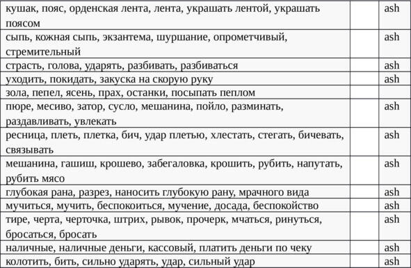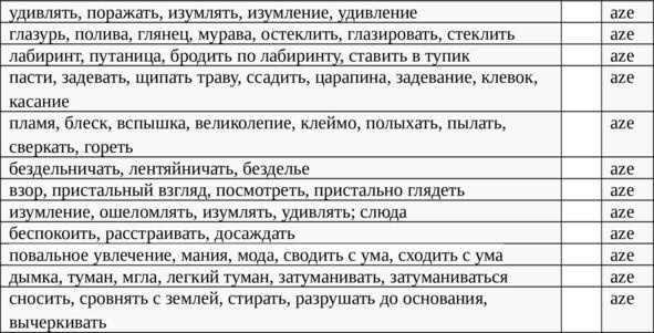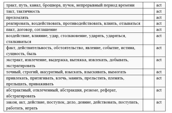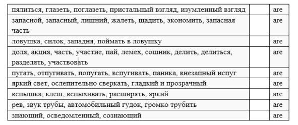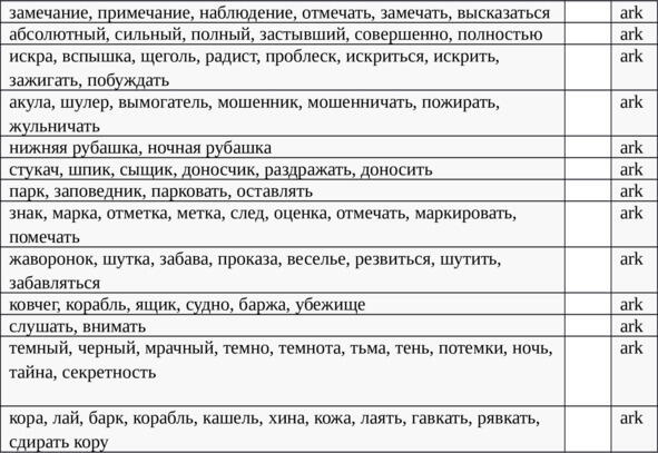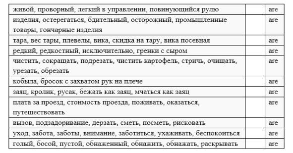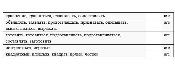 Перед каждой таблицей указан весь список слов, который станет некой подсказкой при проверке своих знаний.