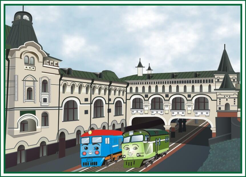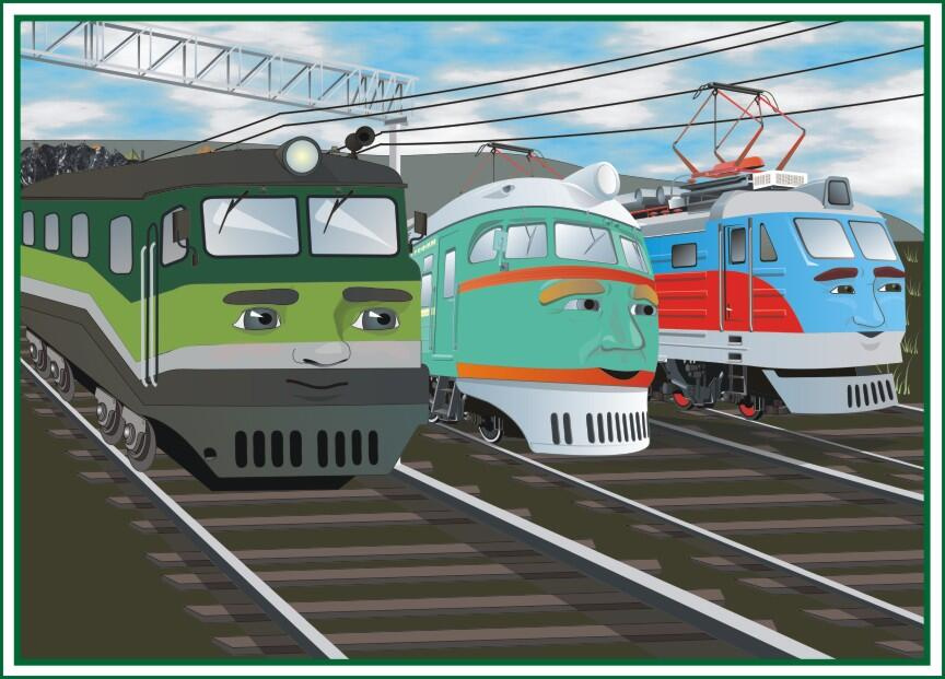 По железной дороге ездят разные поезда. Есть большие и сильные товарные, почтовые, пассажирские.