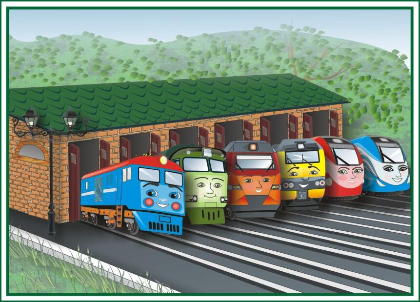 В депо паровозики работают. Освобождают железнодорожные пути, передвигая вагоны и помогая большим поездам.