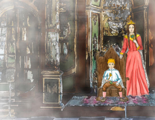 Буби был милым маленьким мальчиком. Когда в праздники на него надевали золотую корону и расшитые золотом одеяния, все это золото не могло затмить яркость его волос, а горностай на мантии не был таким мягким, как его щеки и руки. Он был похож на маленькую дрезденскую китайскую фигурку, которую вместо камина посадили на трон.