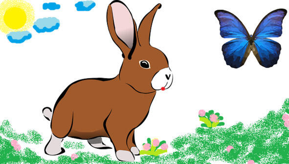 На лесной поляне, где клевер усыпал траву своими белыми и розовыми цветами-помпончиками, кружились разноцветные бабочки. Бабочек было так много, и все они были такие разные белые, голубые, коричневые в жёлтую крапинку, большие и маленькие, что у зайца даже глаза, как говорится, разбежались. Да и не только глаза, и лапы тоже лапы непременно хотели поймать, ну хоть одну бабочку! Что только заяц не делал для этого: то затаится и ждёт удачного момента, чтобы прыгнуть и поймать в лапы присевшую на цветок летунью; то подпрыгнет за ней, желая поймать в полёте Но всё напрасно, ведь бабочки от него разлетались быстрее, чем заяц успевал махнуть лапой, желая поймать хоть одну из них.