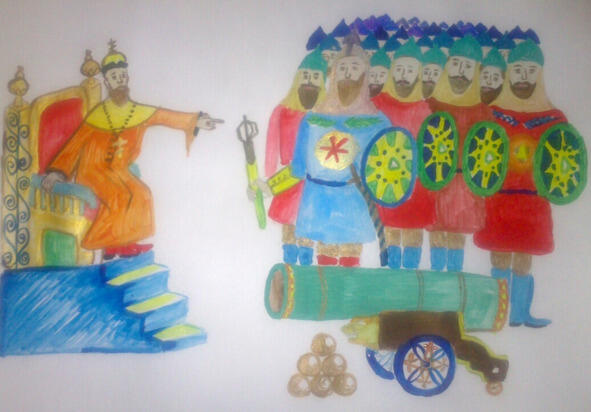 Прослышал про это царь и решил попробовать печенье. Послал он своего воеводу привести к нему повара. А на случай сопротивления повара царь приказал воеводе взять несколько десятков солдат с пушками и ружьями. Так воевода и сделал.