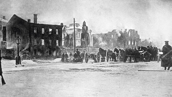 One and a half months after the formation of the first convocation of the Duma, from December 20, 1905, two then-friendly parties, the RSDLP b) and the Left Social Revolutionaries, organized a political strike in Moscow. The main idea of Lenin and his associates the worse, the better. No agreements with opponents or even possible allies, a boycott of the legislature, a course on terror and an armed uprising. 150 thousand people go on strike. Not working transport, institutions, shops. From December 22, government troops use artillery against militants blocked in the building. City authorities, as well as the townsfolk, withdraw from participation in the opposition. The rebels are supported by merchants the Old Believers. The struggle of 8 thousand military men and 2 thousand Bolsheviks, Socialist-Revolutionaries, and Caucasian students lasts 10 days. The losses of the rebels 1 000, government troops 120130. As a result of this gradually fading small civil war, until 1911, 18,000 people were killed on both sides. Photography artillery shelling barricades in the Presny area. The picture is apocalyptic. Moscow, December 1905