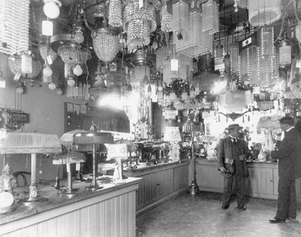 Shop of the Russian electric society Dynamo. Department of lamps. Fontanka Embankment 65, 1911. The look pleases the abundance of electric lamps of various designs. After 10 years, the Bolsheviks create a legend about their exceptional role in the electrification of Russia. The so-called Illich lamp is an incandescent lamp whose cartridge is attached to the ceiling and hangs down. The lampshade of such a lamp is missing. The switch, if any, is located in the body of the cartridge