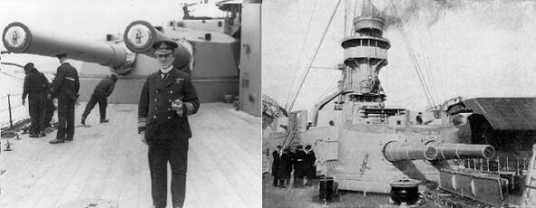 Size matters. On the left guns of the Invincible cruiser, on the right the Scharnhorst