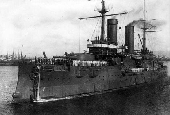 The support of Riga continues to be provided by the still efficient Russian fleet. Since August 8, more than 80 pennants of German squadrons are invading the Gulf of Riga (the first Moosund or Irben operation in 1915). Russian pilots find German minesweepers from the air. Soon a fire contact is established between the visitors and the approached squadron battleship Slava. Two minesweepers sink. Later in the battle enters the British submarine. She drowns the German battle cruiser. There is a series of sea surface battles. German ships, going at random through minefields, suffer serious damage from mines and enemy gunfire. By the end of August the invasion fleet leaves the Gulf of Riga. Germany loses 7 pennants, incl. Battleship and two light cruisers, 50 sailors. The loss of the Russian Empire gunboat, damaged battleship and three destroyers, 70 people. The photograph shows the battleship Slava, one of the best ships of the Russian fleet.