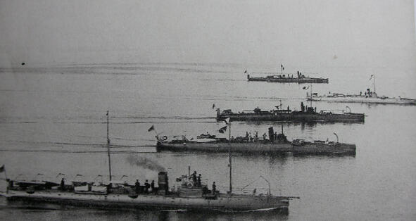 In May 1905, the famous Tsushima battle will take place. About 85 ships of the Japanese fleet are attacking the following 38 pennants of the 2nd Pacific squadron of Admiral Rozhdestvensky following Vladivostok. The Mikasa flagship gets 40 hits of large-caliber (305 mm.) Russian shells, but thanks to their stiff fuses and the excessively safe for travel in the tropics moisture of pyroxylin, it does not have any serious damage. Formed in the armor holes, the Japanese plug in traffic jams. The ships of the Pacific squadron, after several discouraging clashes, one by one break through to their destination, fight, are thrown on a sandbank, or surrender. Only three of them come to Vladivostok. Admiral Z. Rozhdestvensky, the carrier and distributor of sacrificially suicidal feelings throughout the Russian fleet, climbs aboard the Mikas Japan loses two or three destroyers in this battle. In the photo Japanese ships during the battle of Tsushima. Tsushima is a small island in the Korean Strait, and its name translates as Donkey Ears. In total, about one hundred main and auxiliary ships take part in the battles of the Russo-Japanese war from each side. The loss of the Russian fleet 64 pennants, the Japanese squadron 24. Most of the latter destroyed by mines. After exhaustion of forces (the Japanese foreign debt increases fourfold, the Russian one third) and the huge losses the Japanese army 80,000 killed, the Russian army 60,000, September 5, 1905, both sides, with the mediation of Theodore Roosevelt, make peace. The militarists receive half of Sakhalin, Korea and the territories of modern China.