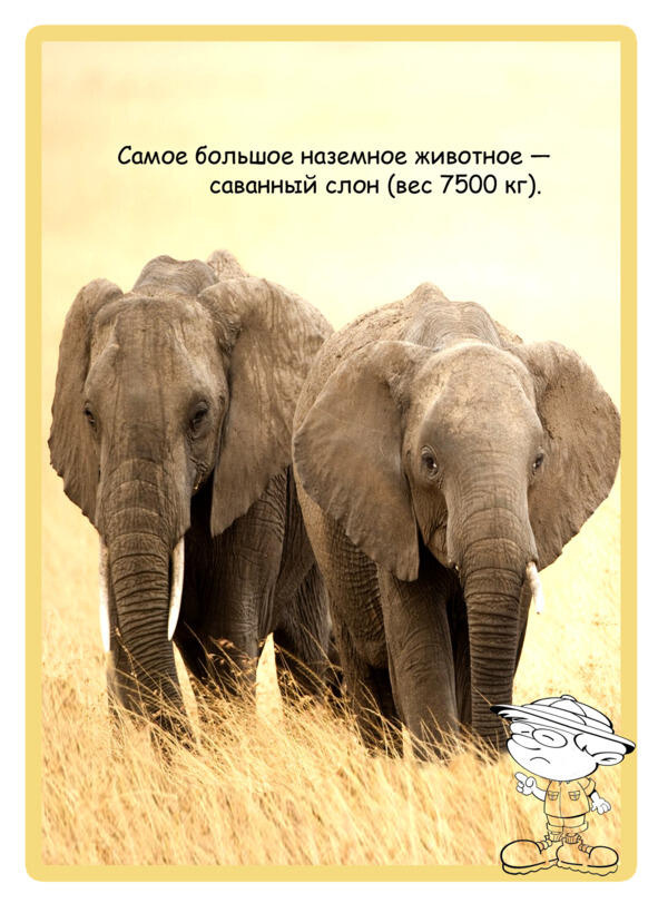 Крупные хищники в саваннах, огромные стада животных, обезьяны и змеи в тёмных густых лесах.
