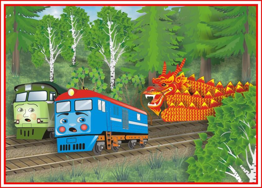 Там, в лесу, дракон! запыхавшись, протараторили напуганные паровозики.