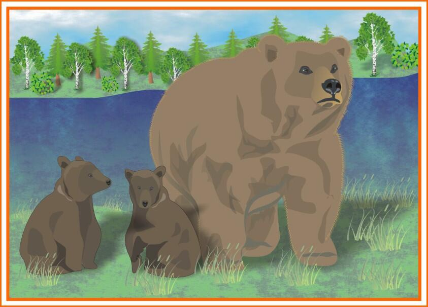 Это бурый медведь, сказал профессор. Один из самых крупных наземных хищников! Вернее медведица с медвежатами.