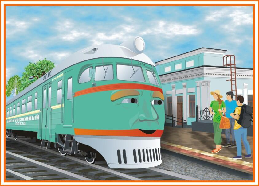 Экскурсионный поезд Трофим прибыл в город Уссурийск, чтобы забрать туристов. Он подъехал к платформе.