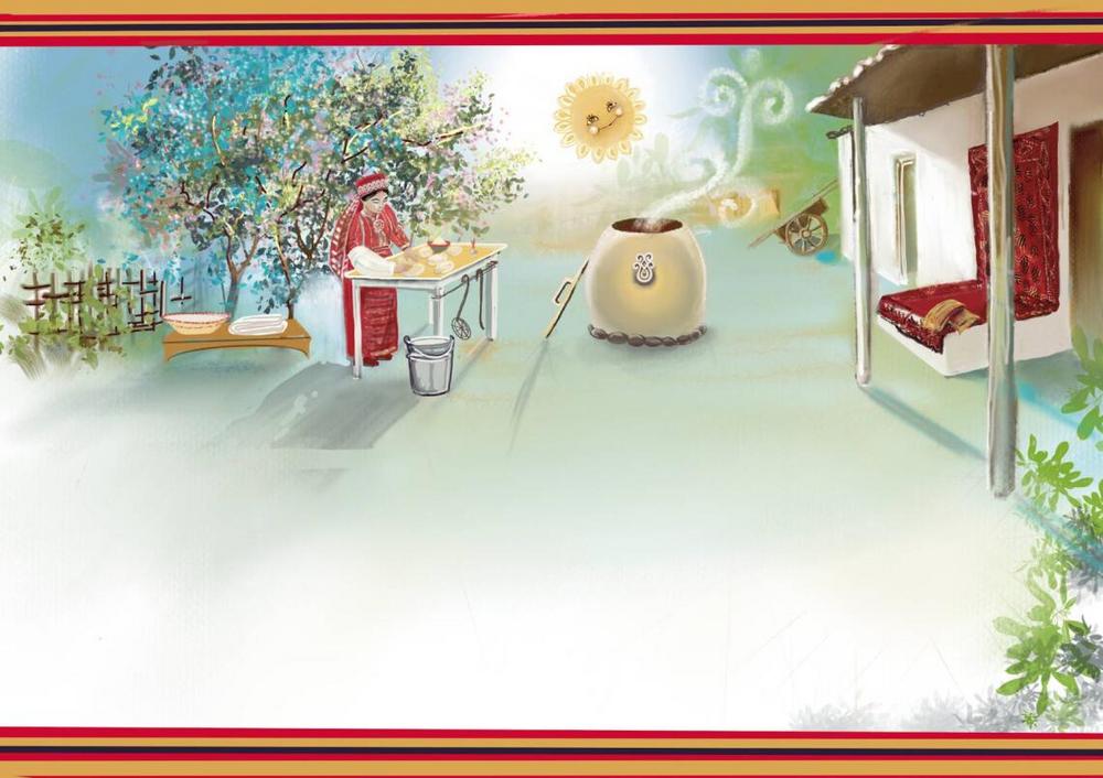 Бахар гелина* приготовила тесто для хлеба. Она выпекала хлеб дважды в неделю на всю семью, семь человек. Из теста она слепила круглые большие лепешки и маленькие для детей. Лепешки были плоские и узорчатые из-за дырочек, которые она сделала, проткнув тесто специальным декоративным прибором с небольшими иголками, как у ежей.
