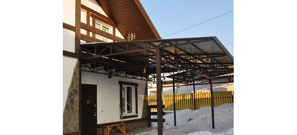Навес к дому, изготавливаемый своими руками, конструктивно отличается от козырька. Это более массивная конструкция, для крепления которой недостаточно одних только кронштейнов, здесь понадобятся специальные стойки. Если этот элемент не был предусмотрен ещё на этапе проектирования дома, можно построить навес своими руками. Здесь вы узнаете, как сделать навес к дому над крыльцом, оконным проемом и пристроенный к стене.