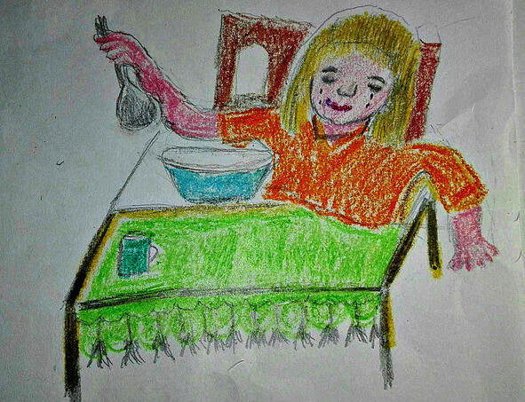 Вот как-то сидит Маша за столом, а мамочка её потчует омлетом.«Смотри, доченька, какой я тебе омлетик приготовила». И правда, на красивой тарелке лежал аппетитный омлет. Мама украсила его ягодками и орешками. Получилась забавная мордочка с изюмными глазками и ротиком-клубничкой.«Ну поешь, Машенька, видишь какая эта пища для тебя полезная, я так старалась.» «Не хочу я», опять закричала Маша.«Дай мне пироженку и шоколадку»«Нельзя тебе сладости, ты очень худенькая, надо тебе поправиться»