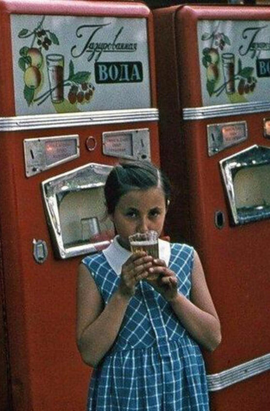 В ряду автоматов всегда был один «копеечный». Вода в нем была просто газированной, но без сиропа. Остальные же автоматы выдавали сладкую газированную воду. Можно было купить стакан воды за 3 рубля с одной порций сиропа, а двойной сироп стоил, вроде бы, 5 или 6 рублей здесь наши мнения разошлись, Гелла запомнил цифру пять, а я шесть, но так ли это важно.