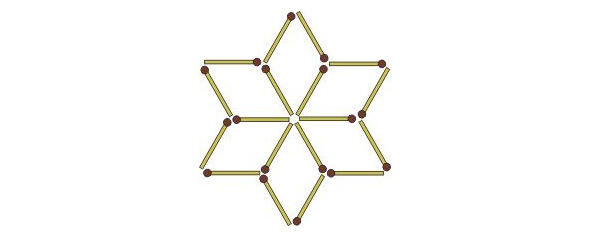 В фигуре, представленной на рисунке, нужно так переложить 6 спичек с одного места на другое, чтобы образовалась фигура, составленная из 6 одинаковых четырехугольников.