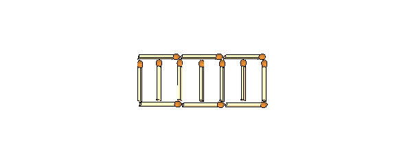 Из 12 спичек нужно составить фигуру, в которой было бы три одинаковых четырехугольника и два одинаковых треугольника. Как это сделать?