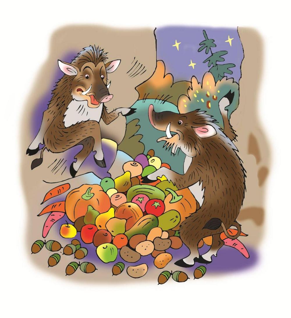 На-тас-ка-ли о-ни в сво-ё жи-ли-ще го-ру пло-дов, за-пас-лись на зи-му.