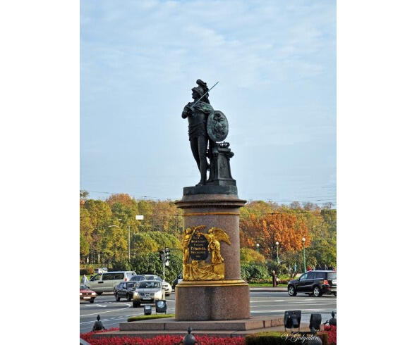 Before us the Russias first monument established in honor of the uncrowned person. The monument (the sculptor M. Kozlowski, with the assistance of architects K. Rossi and A. Voronikhin) was built in 1801, on the highest command of the Emperor Paul I, and is a bronze figure of Suvorov on a granite pedestal. There is no portrait similarity, of course, we see the allegorical image of The Ancient Greek soldier, yes unless in similarity business?! No, matter in grateful memory!