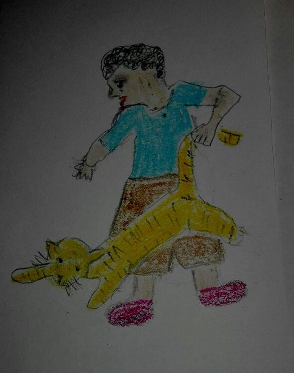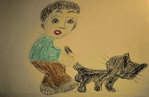 Всё это видела Зоя, гулявшая на дворе, Она подскочила к Борьке, крепко стукнула его по спине и схватив котёнка на руки, побежала с ним домой вся в слезах. Мама, выслушав всё о проказах Борьки, позволила поместить котёнка в кладовку, накормить его и сделать ему домик из картонной коробки. Кушать молоко котёнок не стал, а безучастно лежал на боку. Зоя смастерила очень уютную постельку, хотела его уложить туда в кроватку, но когда взяла его, то он уже был неживой!