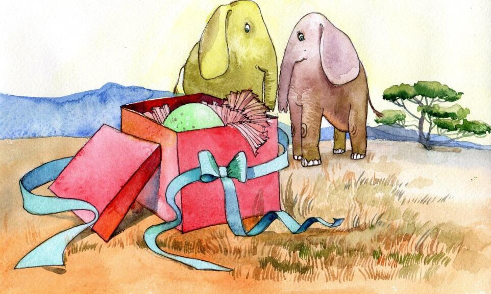 Подарок! послышался из спальни радостный голос слонихи. Ах, неужели мы получили подарок? Наверное, почтальон Эмик принёс его рано утром.