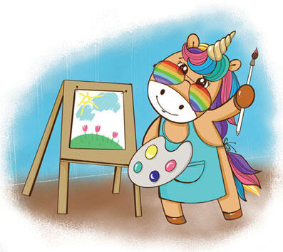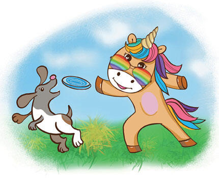 ТОТТИ сильный и уверенный в себе молодой единорог. А еще он очень стильный. И всегда носит солнечные очки радужного цвета.