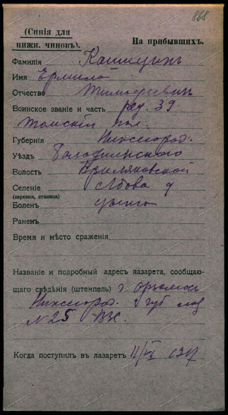 Кашицын Аксидин Тимофеевич (Георгиевская медаль IV степени)