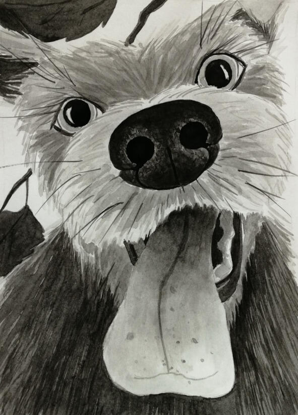 Рядом стоял рыжий взъерошенный пёс, который выглядел как безродное дворовое животное. Склонившись над лицом Николая, собака часто дышала. Из открытой пасти свисал влажный розовый язык.
