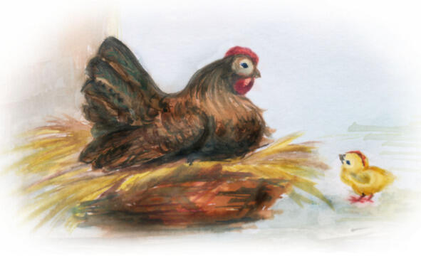 Квочка квохчет, ждёт, печётся.