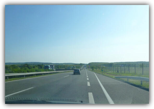 Мы ехали на юг по Австрии, и природа была очень скромная. У дороги какой-то бурьян, местами разбавленный большими красными маками. Много возделанных полей, узкими цветными полосами уходящих к горизонту. Очень скромные домики с оградами из сетки-рабицы. Из деревьев какое-то мелколесье, щуплые липки, драные осины