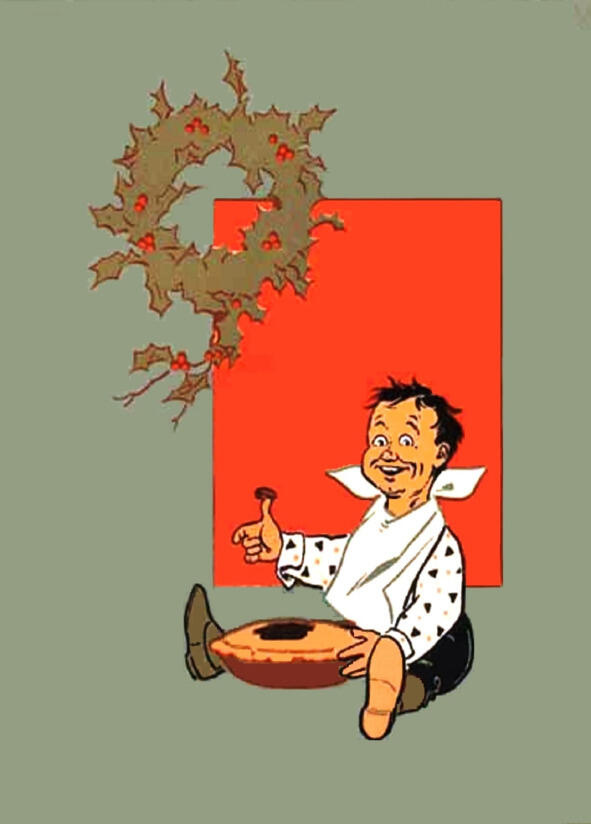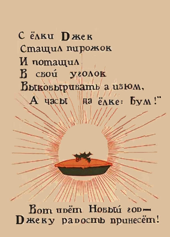 Little Jack HornerSat in the corner, Eating a Christmas pie; He put in his thumb, And he took out a plum, And said,«What a good boy am I!»