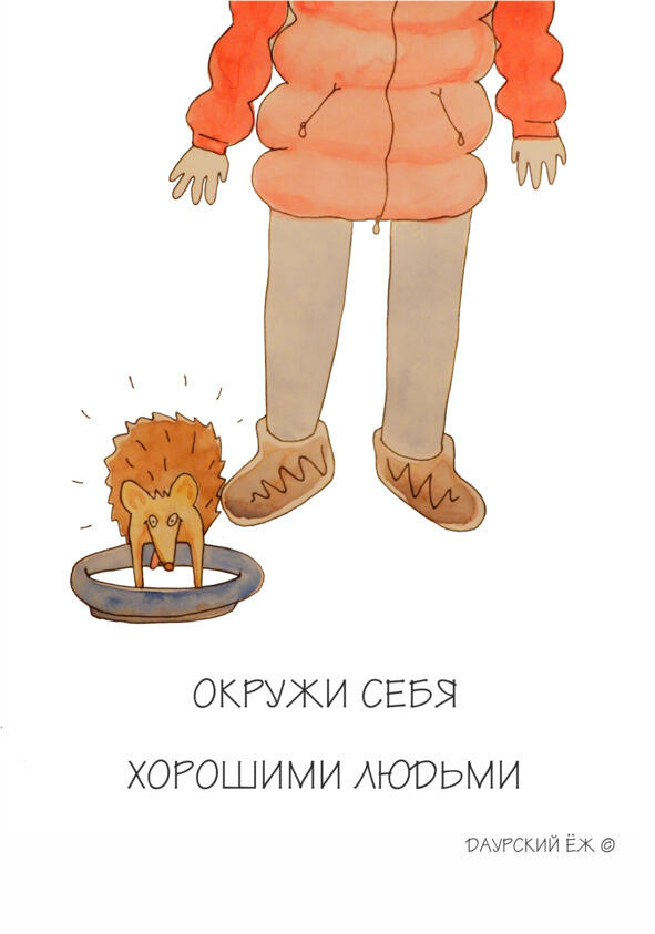 Даурский ёж всегда умел дружить. Он может найти себе друга и в степи, и в тайге, и в Забайкалье, и в Китае, и в Монголии. И хотя размер даурского ежа может достигать всего 30 см, среди его приятелей может быть и медведь и даже огромный слон. Как ему удаётся заводить новые знакомства? Ответ очевиден. Во-первых, даурский ёж имеет доброжелательный характер и неколючие иголки. Поэтому с ним всегда приятно общаться и гладить. Во-вторых, даурский ёж всегда одет в аккуратный светло-бежевый костюм из жёсткой и короткой шерсти на брюшке и лапках, а на его спинке красуются светлые иголки.
