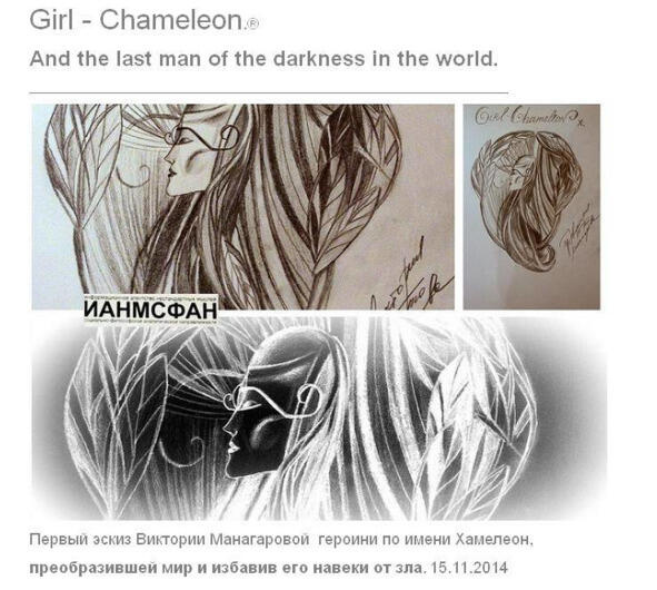 МЕНЯ ВДОХНОВИЛА ЭТА ИДЕЯ И Я ПРЕДЛОЖИЛА АГЛАЕ НАЗВАТЬ ВОЛШЕБНУЮ ЛЕДИ СИЛЬНЫМ ИМЕНЕМ ХАМЕЛЕОН, КОТОРАЯ БУДЕТ СПОСОБНА ОДНИМ ЛИШЬ ВЗГЛЯДОМ ПОБЕДИТЬ В МИРЕ ЛЮБОЕ ЗЛО