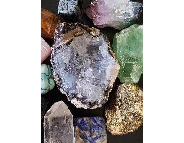 Разглядывал друзы горного хрусталя и аметисты, сидя на скамейке в саду.