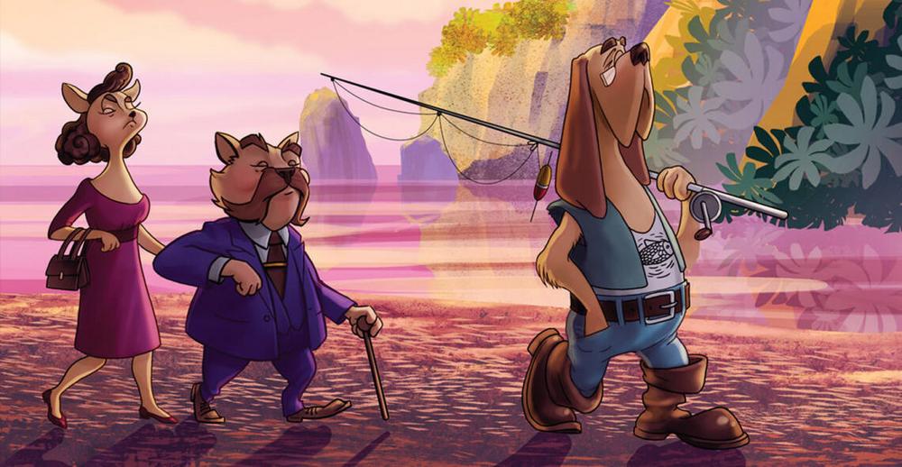Тяжело было, когда он застревал между ветками. На его громкие крики о помощи сбегались все жители острова Каждый помогал, как мог. Обезьяны тянули его за хвост