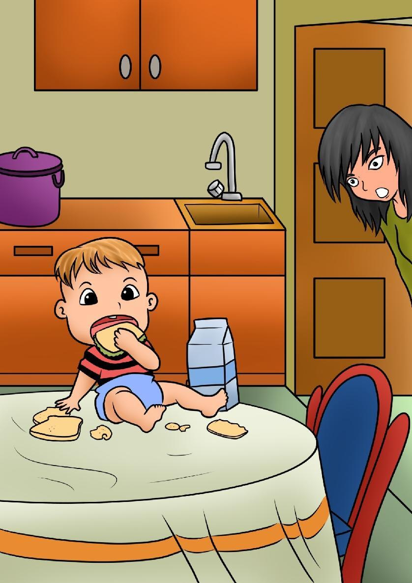 Il pianto di Norman svegliò i suoi genitori che, entrando in cucina, rimasero sorpresi nel vedere il bambino piangere.
