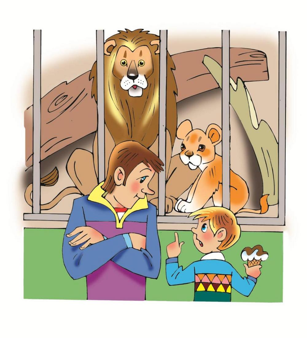 Сидят в клетке Лев и Львёнок.