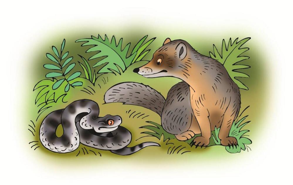 Гадюка и МангустШёл по садовой дорожке домашний Мангуст. Вдруг из-за ограды стрелой вылетела Гадюка и только собралась его ужалить, как Мангуст от неожиданности жалобно завопил: