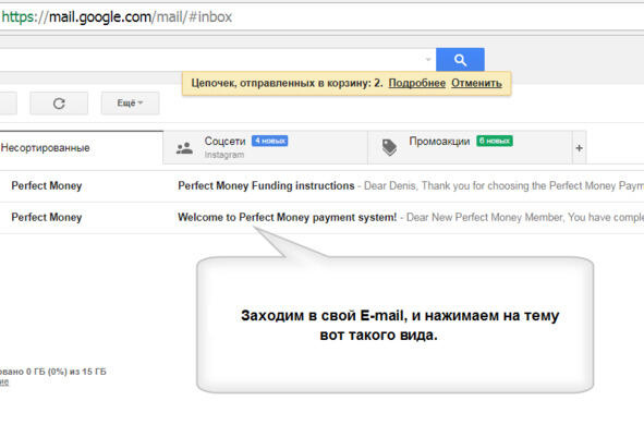 WE GO INTO YOUR E-MAIL AND OPEN A LETTER FROM PERFECT MONEY