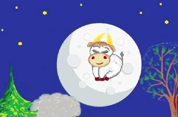 Жил на свете бычок белый бочок золотые рожки! Днём он в поле гулял ел траву шелковую, из ручья пил воду студёную, а ночью в небо поднимался, то в луну, то в месяц превращался да землю с высоты освещал.