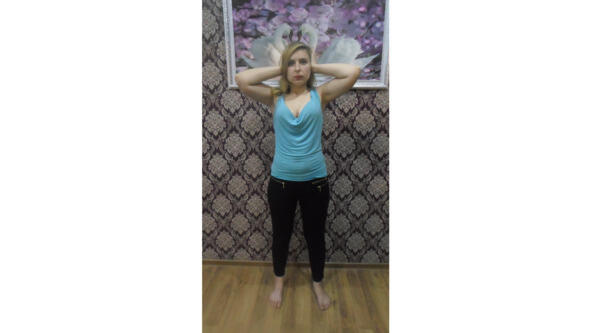 В данном упражнении. Кладем руки на уши и легким нажимом. Делаем его 31 раз