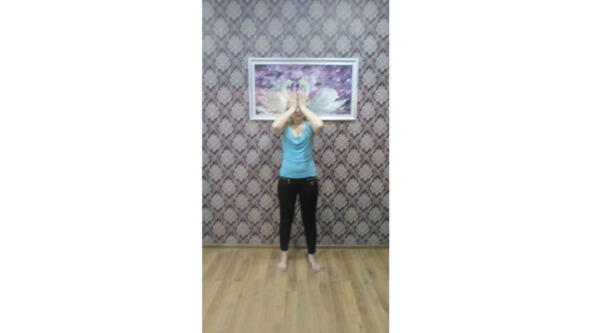 В данном упражнение мы кладем руки, нижней стороной ладони на глаза. И легким нажимом на глаза. Делаем 31 раз