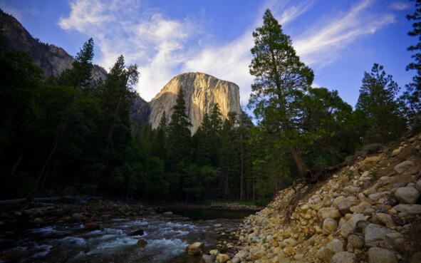 Они были древними и могучими, а из-за ветра был слышен скрип некоторых деревьев и как листья бьются друг от друга, словно миллиарды аплодисментов по всему лесу. Ветер был тёплым, приятным и когда он попадал на лицо, то хотелось закрыть глаза и наслаждаться лесным воздухом, запахом воды и кедра. Если посмотреть чуть выше, то можно увидеть огромную каменную гору, на которую падали лучи солнца, освещая её ребристую поверхность, а выше смотреть просто было невозможно.