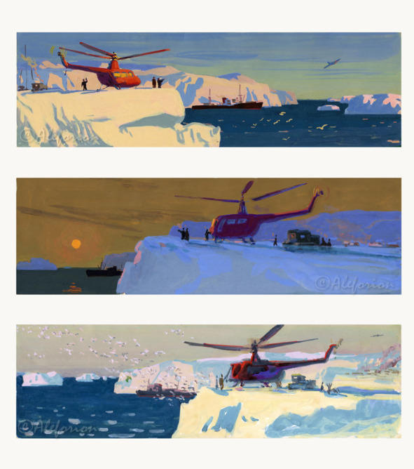 Трилогия «Арктика 1», «Арктика 2», «Арктика 3», бумага, гуашь, 25 х 8 см, 1956 г.