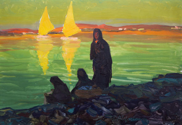 «Женщины на берегу Нила», А. Кокорекин, картон, масло, 50 х 35 см, 1959 г., «Египетская трилогия».
