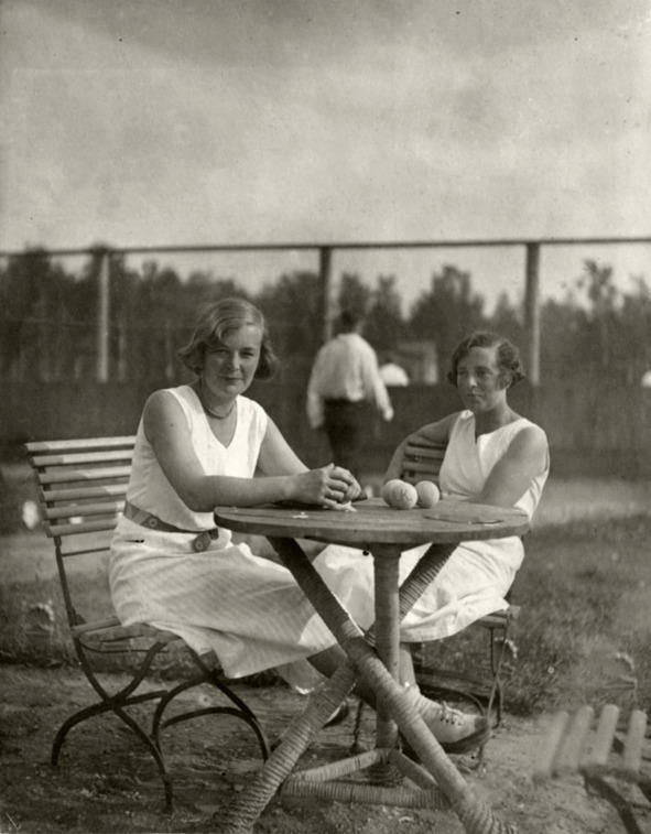 На корте, Ольга Дмитриевна (слева), самое начало 30-х гг. прошлого века.