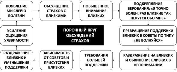 Рано или поздно всё это надоедает вашим родным, и они, понимая, что вы, вероятнее всего, просто «придуриваетесь», начинают злиться на вас и отказывать вам в поддержке того качества, которого вы от них требуете. Однако отсутствие поддержки со стороны близких усиливает ваше ощущение уязвимости и беспомощности и порождает желание показать, что вам на самом деле не по себе и что переживаете вы не напрасно, что, в свою очередь, приводит к ещё более ярким эпизодам беспокойства и сомнений в собственном здоровье. В результате постоянные обсуждения ваших состояний, страхов и симптомов с близкими приводят к тому, что вы чувствуете себя хуже, а ваши личные и семейные отношения портятся, что также не способствует улучшению вашего душевного состояния и физического самочувствия (см. рис. 13).